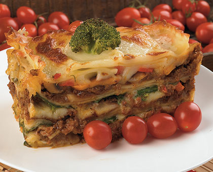 3. سپس بقیه پنیرها را روی مواد پخش کرده و گوجه‌های خرد شده را روی آن بریزید و به مدت تقریبی ۳۵ تا ۴۰ دقیقه در فر با دمای ۱۷۰ درجه سانتیگراد قرار دهید. در پایان روی آن جعفری خرد شده بپاشید و سرو نمایید.