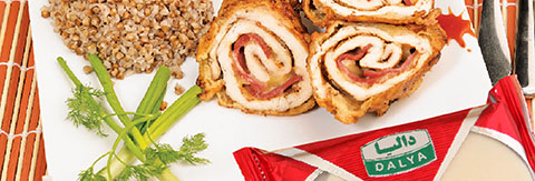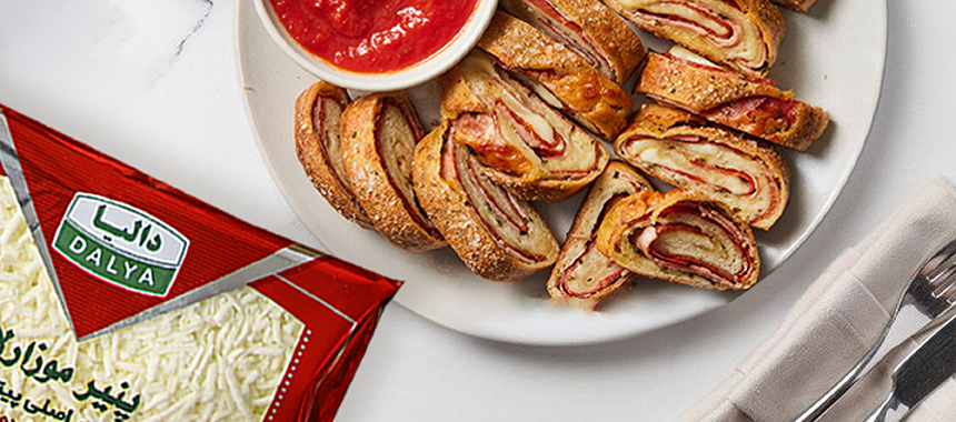 برای رول کردن خمیر ابتدا سمت چپ و راست آن را کمی تا کنید، سپس محکم خمیر رول کنید قبل این که کامل خمیر را بپیچید قسمت انتهایی آن را کمی از تخم مرغ زده شده بمالید و سپس خمیر را کامل و محکم رول کنید.