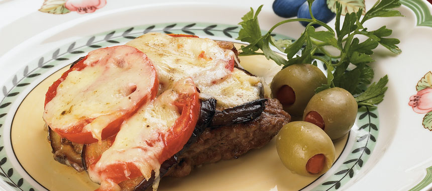 - روی یک تکه بزرگ فویل را کمی چرب کرده سپس یک تکه از اسکالپ را بگذارید روی آنرا بادمجان چیده روی بادمجان گوجهفرنگی و روی گوجه را ورق پنیر بگذارید در انتها اورگانو بپاشید.