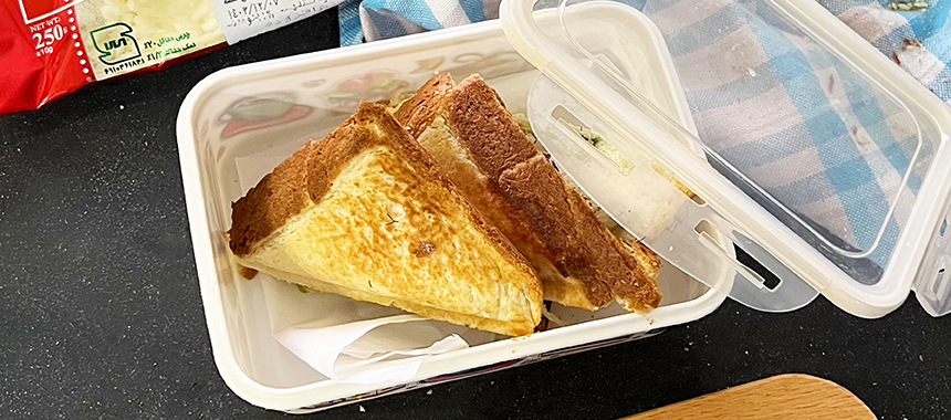 همه مواد را با هم ترکیب کرده و لای دو نان تست قرار داده و با دستگاه ساندیچ میکر یا تابه پرس و تست میکنیم. نوش جان!