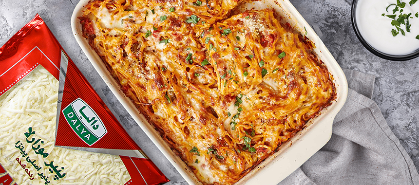 فر را با دمای ۱۹۰ درجه سانتیگراد گرم کنید. اسپاگتی های پخته را در یک ظرف پخت قرار دهید و روغن زیتون، سیر، پیاز، چاشنی ایتالیایی و نمک را به آن اضافه کرده و به خوبی هم بزنید.