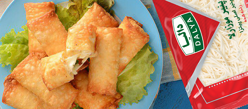 یوفکا دالیا را به تکههای کوچک برش دهید، یک قاشق از مواد و یک قاشق پنیر موزارلای رنده شده دالیا درون آن بریزید، گوشههای یوفکا را روی هم قرار داده و رول کنید و در روغن خیلی داغ سرخ کنید. سپس روی دستمال کاغذی آشپزخانه بگذارید تا روغن اضافه گرفته شود.