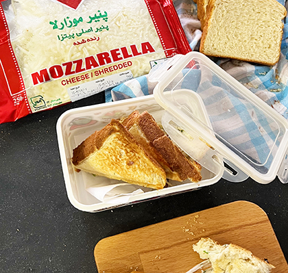 - سپس پنیر را افزوده و مخلوط نمایید و نانها را در کف سینی یا ظرف مناسبی که چرب کردهاید قرار دهید.