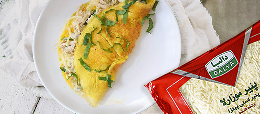 6. مرغ خرد شده، موزارلا رنده شده و اسفناج خرد شده را به نصف املت اضافه کرده و به مدت ۳۰ ثانیه تفت دهید.