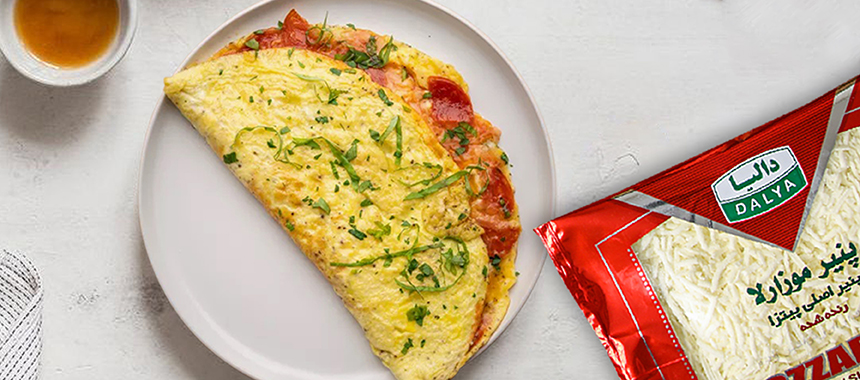- وقتی املت تقریبا سفت شد، با قاشق سس گوجه فرنگی گرم شده را روی نیمی از آن بریزید. سس گوجه فرنگی را با پپرونی و پنیر رنده شده بپوشانید و به مدت ۳۰ ثانیه حرارت دهید تا قهوه ای شود.