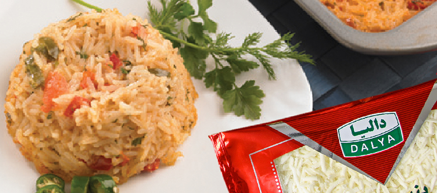 سپس برنج و سس سفید را با بقیه مواد مخلوط کرده و در آخر پنیر موتزارلای رنده شده دالیا را به آن اضافه کنید.