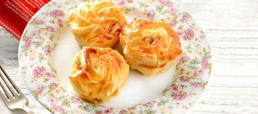 - سپس از سس تهیه شده روی آن بریزید و از مخلوط پنیر و جعفری در وسط آن قرار دهید و کناره های یوفکا را به سمت داخل و روی گل ببندید.