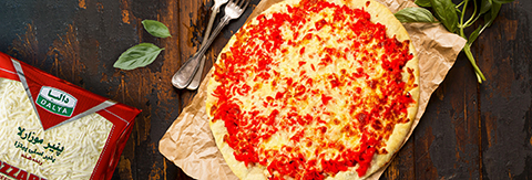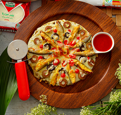 2. پنیرموتزارلای ورقه ای دالیا را از طول با چاقو دو نصف کنید.