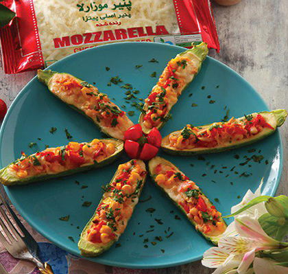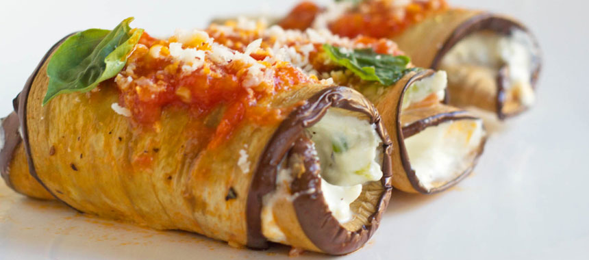 - گوشت و پیاز را با هم سرخ کرده ، نمک و فلفل و رب گوجه فرنگی را اضافه می کنیم و می گذاریم سرد شود . نخود فرنگی پخته شده و پنیر موزارلا را اضافه می کنیم و مواد را به اندازه گردوی بزرگ گلوله می کنیم و بر روی ورقه های بادنجان قرار می دهیم و مثل رولت می پیچیم . گوجه فرنگی ها را حلقه کرده و در زیر و روی رولت یک حلقه گوجه فرنگی قرار می دهیم و در ظرف پیرکسی در کنار هم می چینیم و کمی آب می ریزیم و در فر با حرارت ۱۸۰ درجه سانتی گراد به مدت ۴۵ دقیقه می پزیم .