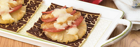 - در پایان رول ماکارونی را همراه سس گوجه و برگهای سبزیجات سرو نمایید.