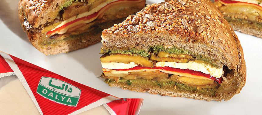 - سپس روی نان را برش بزنید قدر از خمیر اضافه را جدا سازید و داخل آن را با سس پستو آغشته کنید.