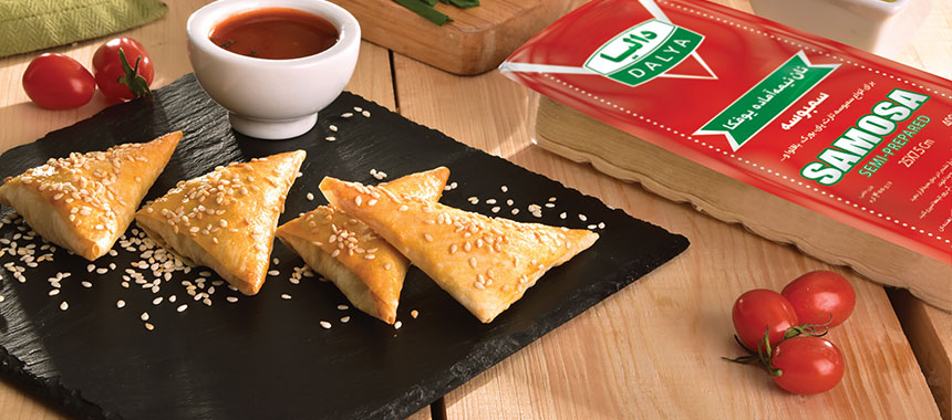 سپس یوفکای سمبوسهای دالیا (یا یوفکا مستطیلی را به صورت نوارهای باریک برش میزنیم). از مواد در گوشه پایین یوفکا میریزیم و به شکل مثلثی تا میزنیم، تا زدن را تکرار میکنیم تا به انتهای یوفکا برسیم (میتوان از آب یا سفیده تخم مرغ برای چسباندن لبهها استفاده نمود) و در روغن سرخ میکنیم. برای گرفتن روغن سمبوسههای سرخ شده روی دستمال کاغذی آشپزخانه بگذارید.