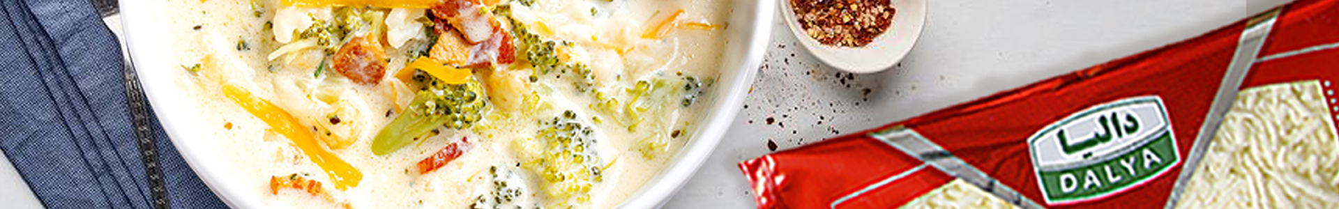 در یک قابلمه بزرگ، آب، آب مرغ، گل کلم و کلم بروکلی را با کمی نمک و فلفل سیاه را مخلوط کرده و درب آن را بگذارید و ۴ تا ۵ دقیقه بجوشانید.