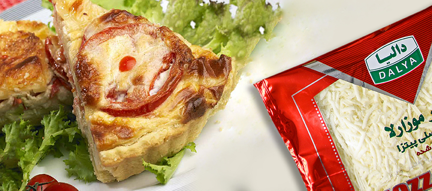 خمیر را از یخچال خارج کرده و روی سطح کمی آرد پاشیده شده با وردنه باز کنید، قالب فلن ۳۰ سانتیمتری را چرب کرده و خمیر باز شده را داخل قالب بیاندازید، بصورتیکه کف و دیوارهی قالب را کاملا بپوشاند سپس روی خمیر را با گوجه فرنگی های ورقه شده، پنیر اسلایس و نان برش زده شده بصورت ناهماهنگ و در هم بپوشانید.