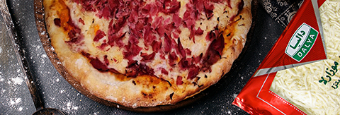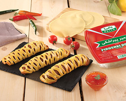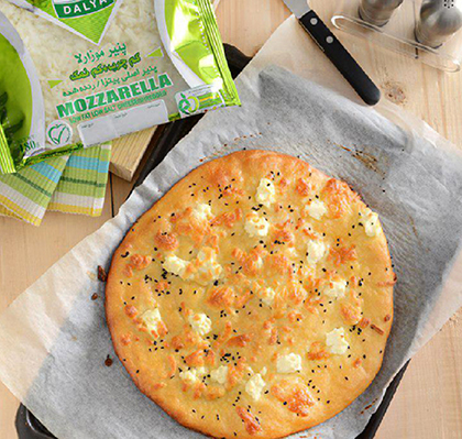 فر را با دمای ۲۳۰ درجه سانتیگراد گرم کنید. پنیر موزارلا را بر روی خمیر داخل تابه ریخته و خمیر دیگر را روی پنیر قرار دهید و لبه های دو خمیر را بر روی هم فشار دهید.