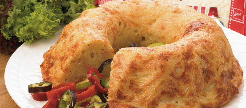 - اسپاگتی را در آب جوش و نمک پخته آبکش کرده سپس در کاسهای همراه با تخممرغها، موتزارلا و سوسیس، پارمزان، خامه، جوزهندی و فلفل سیاه مخلوط کرده در قالب بریزید روی قالب را با فویل بپوشانید و در طبقه وسط فر ۴۰ دقیقه بگذارید بعد از ۴۰ دقیقه رویش را برداشته ۲۰ دقیقه دیگر یا تا زمانی که طلایی شود بپزید.