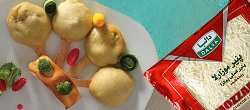 6. اکنون روی خمیر را نیز با مایه شیر زعفرانی آغشته کنید و پنیر موزارلا روی آن بریزید و در فرم گرم کرده با دمای ۱۸۰ درجه سانتیگراد به مدت تقریبی ۲۰ دقیقه بپزید تا اندکی طلایی رنگ شود.