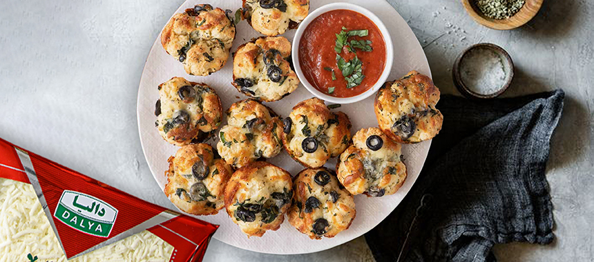 خمیر را به یک سطح صاف منتقل کنید و به شکل توپ در آورید سپس آن را به قطعات کوچک برش بزنید. تکه های خمیر را به یک کاسه بزرگ منتقل کنید و با روغن زیتون، چاشنی ایتالیایی، پودر سیر، نمک و فلفل مزه دار کنید، سپس پنیر موزارلا، ریحان و زیتون را نیز اضافه کنید و هم بزنید تا به خوبی مخلوط شوند.