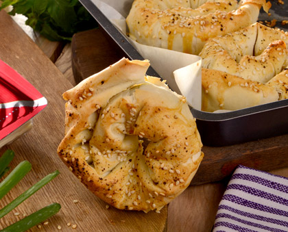مخلوط خمیر را در قالب مافین آماده شده تقسیم کنید و به مدت ۱۵ دقیقه در فر قرار دهید تا پنیر آن طلایی شود.