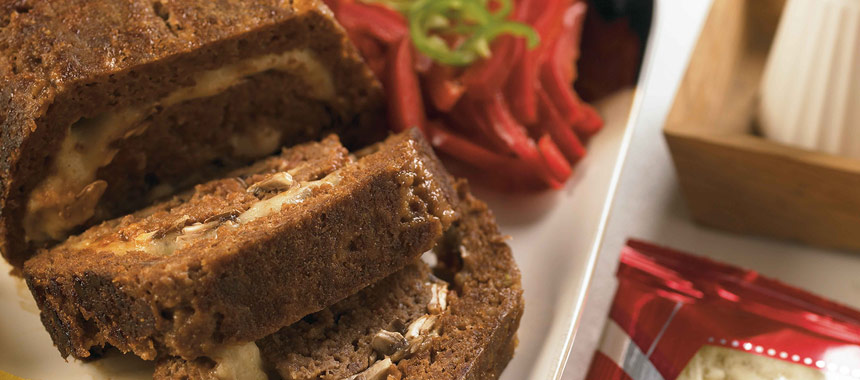 - دو ورق کاغذ روغنی را به طول ۳۰ سانتیمتر بریده و گوشت را در مرکز آنها قرار دهید. گوشت را با وردنه یا دست به آرامی فشار دهید تا گوشت کاملاً پهن و یکدست شود. کاغذ روغنی بالایی را برداشته و به ترتیب پنیر، قارچ و سس کچاپ باقیمانده را روی گوشت پهن کنید.