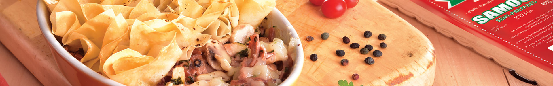 - سینه مرغ خردشده را با جعفری و رنده پوست لیمو مخلوط کرده داخل یخچال ۲۰ دقیقه استراحت دهید سپس مرغها را با سس قارچ مخلوط کنید تمام مواد را کف یک ظرف سرامیکی ریخته و روی آن پنیر موزارلای دالیا بپاشید. سپس یوفکا را بصورت مربع برش زده و از وسط جمع میکنیم و بهوسیله قلمموی مخصوص آشپزی به مقداری کره آغشته میکنیم. روی مواد قرار میدهیم تا تمام سطح آن را بپوشاند.