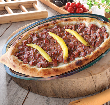 - سینی را بهمدت ۱۵ دقیقه در طبقه وسط فر گرمشده، قرار دهید تا بپزد و نان طلاییرنگ شود. پس از این مدت، پیتزای سالامی را از فر خارج کرده، برش بزنید و سرو کنید.
