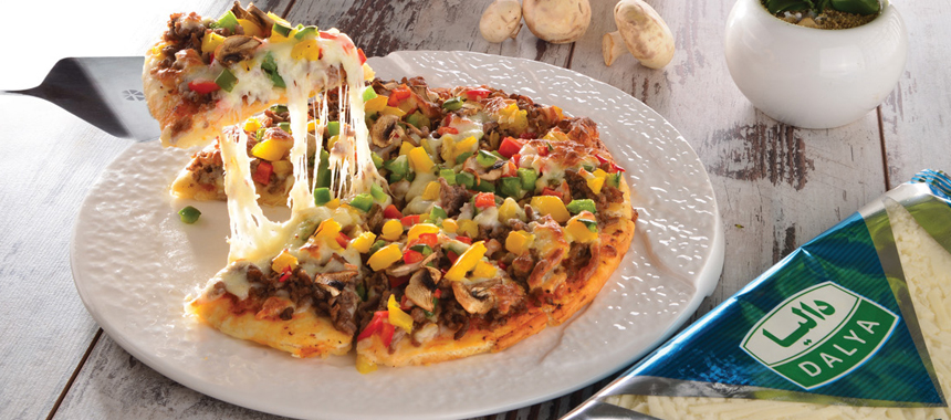 - مقداری از پنیر موزارلا، گوشت و مخلوط قارچ و فلفل را روی سس ریخته، سپس بقیه پنیر را روی آن پخش کنید. سینی را بهمدت ۱۵ دقیقه در طبقه وسط فر گرمشده، قرار دهید تا پیتزا بپزد. پس از پخت، پیتزا را از فر خارج کرده، برش بزنید و سرو کنید.