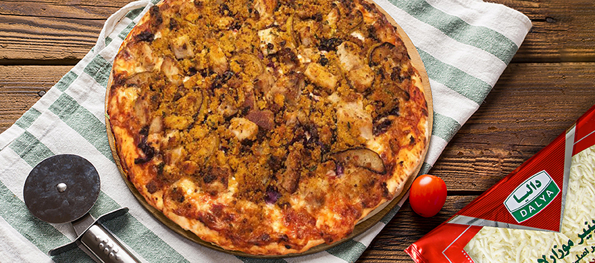 11. به ترتیب سس گوجه فرنگی، پنیر موزالا و مواد آماده شده را به خمیر اضافه کنید.