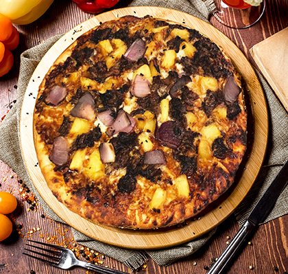 - پیتزا را در فر با دمای ۲۶۰ درجه سانتیگراد به مدت ۸ تا ۱۰ دقیقه بپزید سپس آن را از فر خارج کرده و بگذارید ۵ دقیقه خنک شود.
