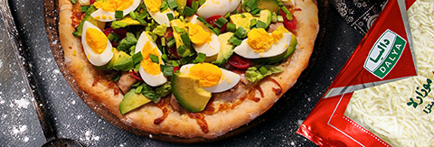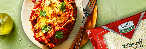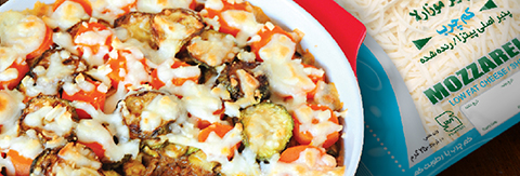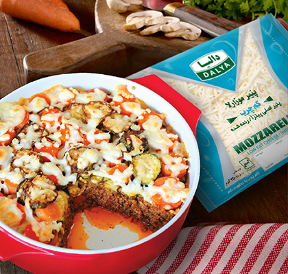 - موزارلای رنده شده و پنیر خامهایی را روی خمیر اضافه کنید و بهمدت ۱۵ دقیقه در فر قرار دهید.