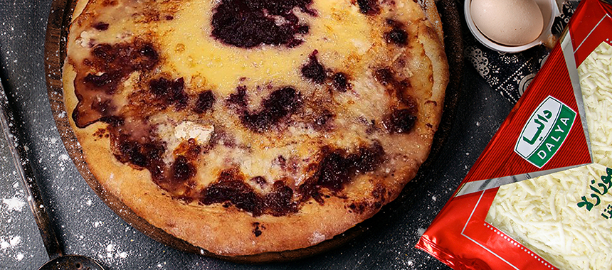 سطح میزکار را آردپاشی کنید و خمیر را پهن کنید سپس به ترتیب ۱ فنجان سس کورن بری و موزارلا اضافه کنید و بری را در وسط پیتزا بریزید، سپس نصف فنجان سس کورن بری را روی بری بریزید.