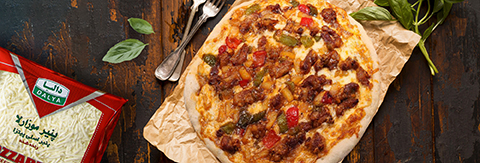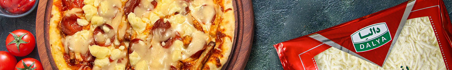 به ترتیب سس گوجه فرنگی، پنیر موزارلا، سیب زمینی سرخ شده، پپرونی و نیمی از پنیر چدار را به خمیر اضافه کنید.