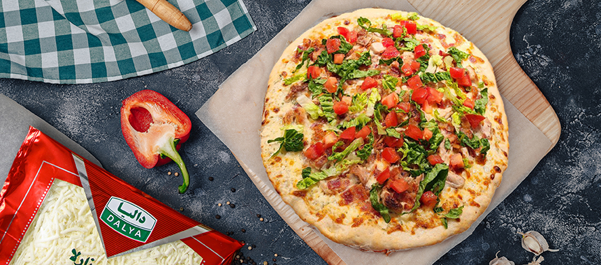 سس رنچ، پنیر، مرغ و بیکن را اضافه کنید. پیتزا را با دمای ۲۶۰ درجه سانتیگراد به مدت ۸ تا ۱۰ دقیقه در فر قرار دهید.