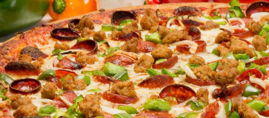 2. پیتزا را از فر درآورده و ازقالب جدا کنید و ۸ تکه برش زده و روی آن آویشن و رزماری بپاشید و با سس سرو کنید .