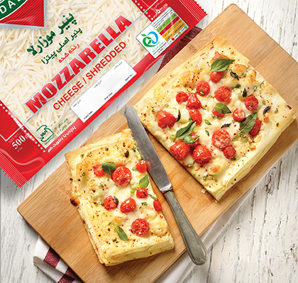 - حالا رویش را با سس آغشته کنید و قدری پنیر بپاشید و اینک گوشت، قارچ، فلفل دلمهای، فیله گوجه فرنگی و پودر آویشن را بریزید و در نهایت مخلوط پنیر موزارلا دالیا و گودا را رویش بپاشید و پیتزا را در فر گرم کرده با دمای ۲۰۰ درجه سانتیگراد به مدت تقریبی ۲۰ دقیقه بپزید تا سطح آن طلایی شود.