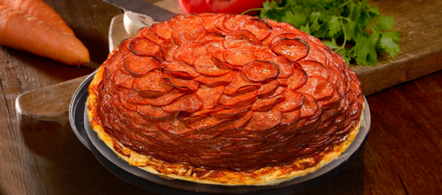 پنیر موزارلا را رنده کنید و سطح میزکار را آردپاشی کنید و خمیر را با وردنه باز کنید سپس به میزان لازم کمی آرد بزنید. کاغذ روغنی آردپاشی شده را زیر خمیر قرار دهید و سپس سس گوجه فرنگی، پنیر موزارلا و ۱۰۰۰ لایه پپرونی را به آن اضافه کنید.