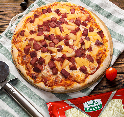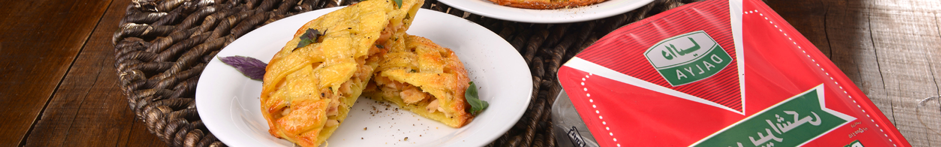 4. دو عدد خمیر پیراشکی را کف سینی قرار دهید، از مخلوط بالا به طور یکدست روی آنها بریزید. خمیرهای با قیمانده را به صورت نوارهای یک سانتی‌متری برش بزنید و به صورت بافت روی مواد پهن کنید، سپس قسمت‌های اضافی خمیر را برش زده و در آخر سطح آن را با قلمو به زرده تخم‌مرغ آغشته کنید.