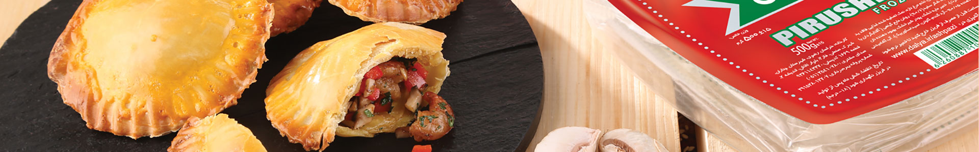 - در تابه روغن فراوان ریخته خوب داغ میکنیم و پیراشکیها را سرخ کرده تا طلائی شود. برای گرفتن روغن، پیراشکیهای سرخ شده را روی دستمال کاغذی آشپزخانه میگذاریم. برای سرو با سس گوجهفرنگی، گوجهفرنگی حلقهشده و جعفری تزیین میکنیم.