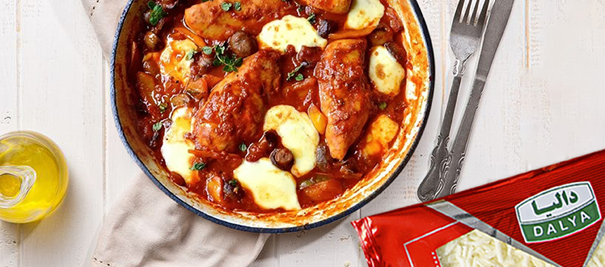 5. در آخر پنیر موزارلا را روی مرغ ها ریخته و در فر از قبل گرم شده قرار دهید تا پنیر حباب کند و طلایی شود.